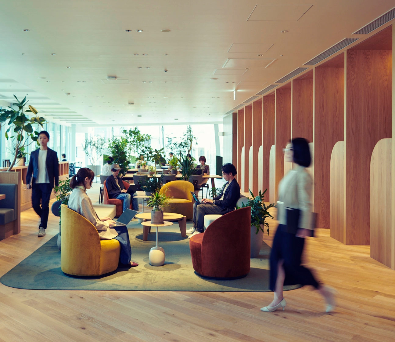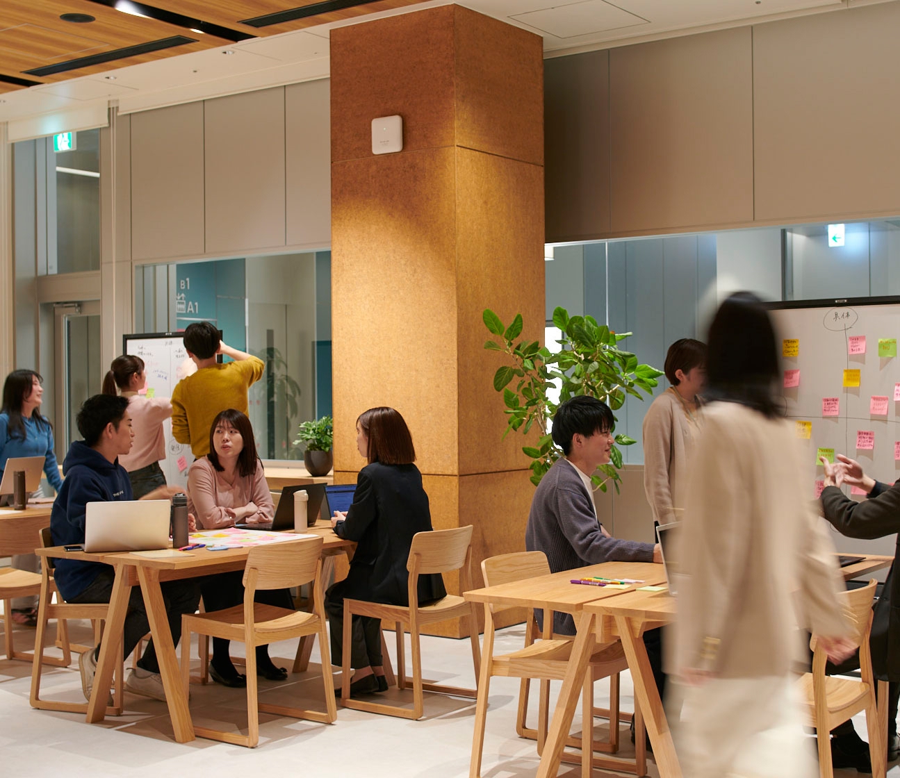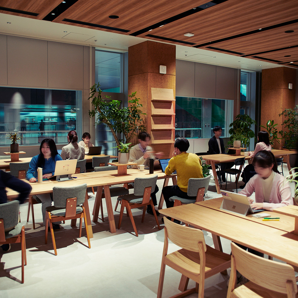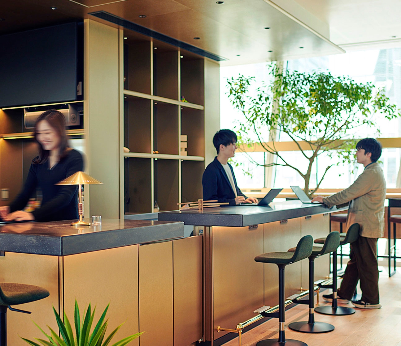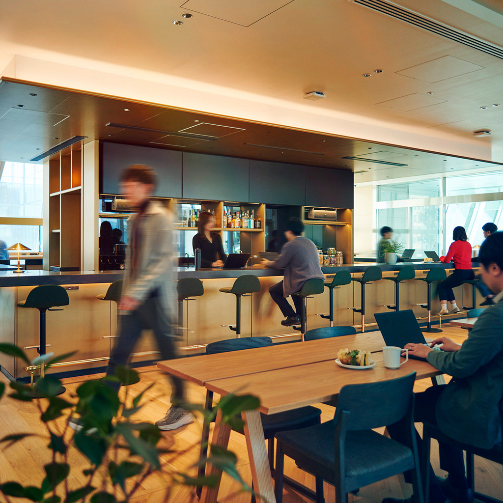 全ての会員が自由に利用できる開放的なラウンジスペースです。施設内のイベントのメイン会場としても使用され、セミナーやワークショップの場としても機能。多様なアイデア、新たなコラボレーションが生まれる空間です。