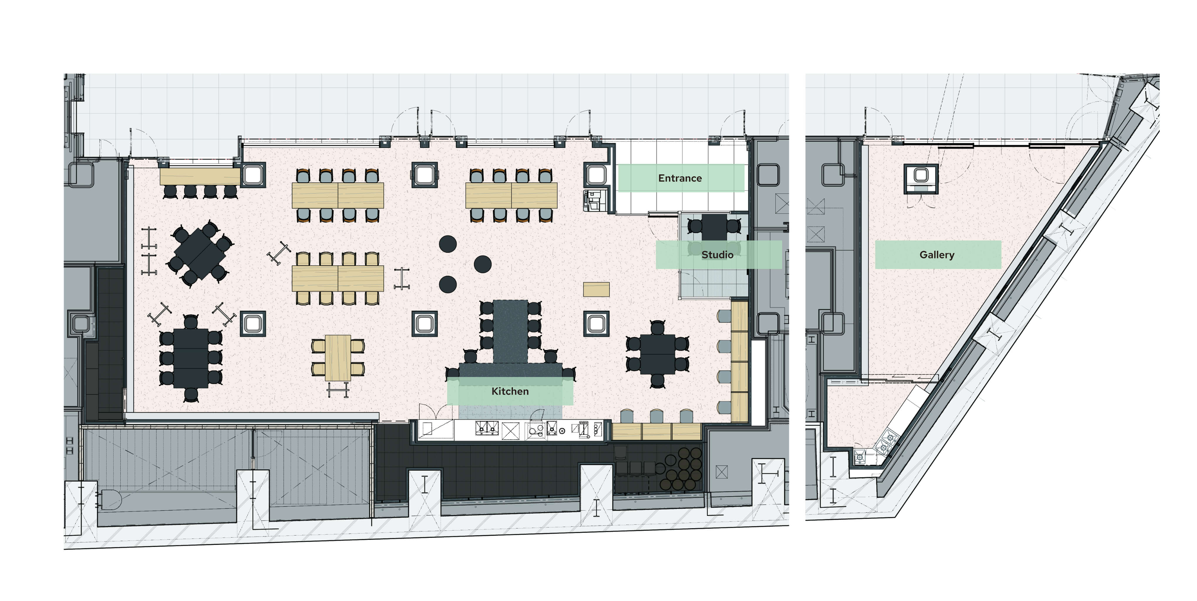 会員の活動を可視化し、発信するための展示スペースです。イベントや展示会を通じてプロジェクトの進捗や成果を共有し、新たな関心や協力を生み出し、さらにその活動の輪を広げ、より大きなムーブメントへとつなげる。社会課題解決のための連携と共創を目指すGlass Rockの象徴的な場となります。