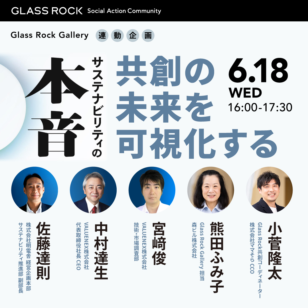 現在、Glass Rock ギャラリーでは初回の展示として「サステナビリティの本音~『自分だけじゃムリ』から『自分にもできる!』へ」を展開しています。
