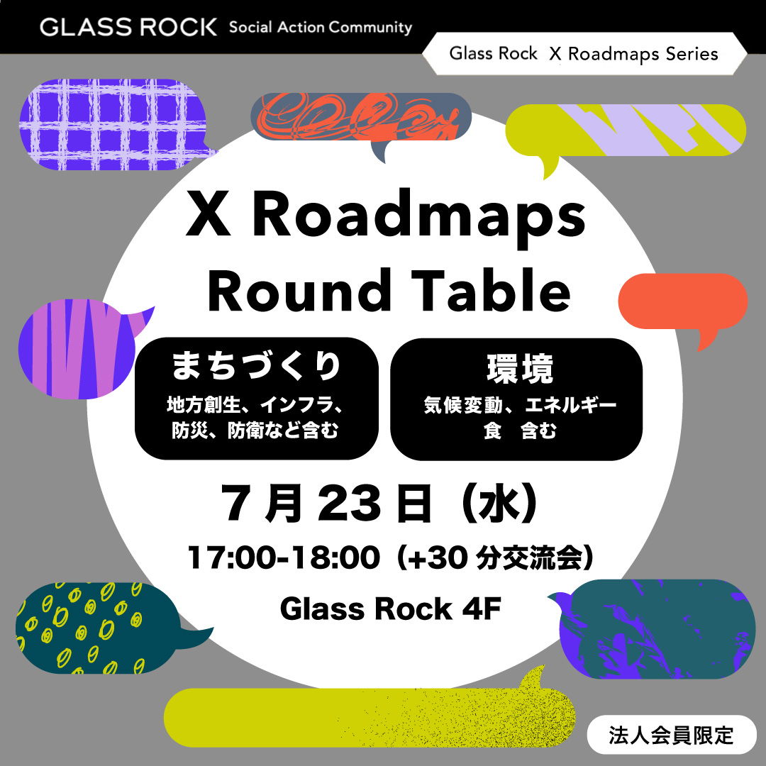 Glass Rockにあつまる企業を中心に、実現したい未来に向けて社会価値、事業価値の両立を目指し、実践の一歩を生み出す「X Roadmaps」。