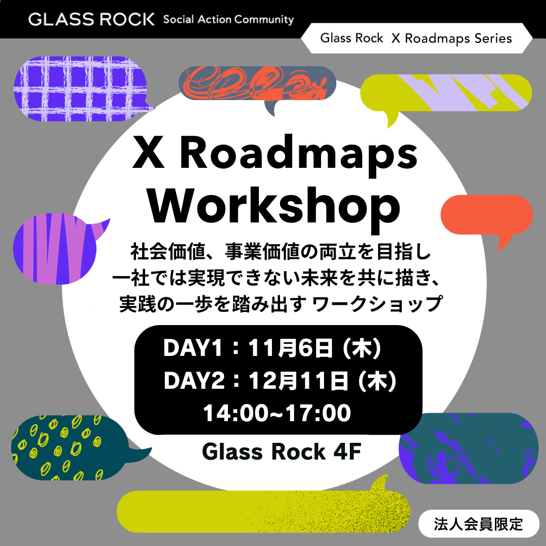 Glass Rockの法人会員の皆様と共に、実現したい未来に向けて社会価値と事業価値の両立を目指し、実践的な一歩を踏み出す2日間の集中プログラム「X Roadmaps」を開催します。